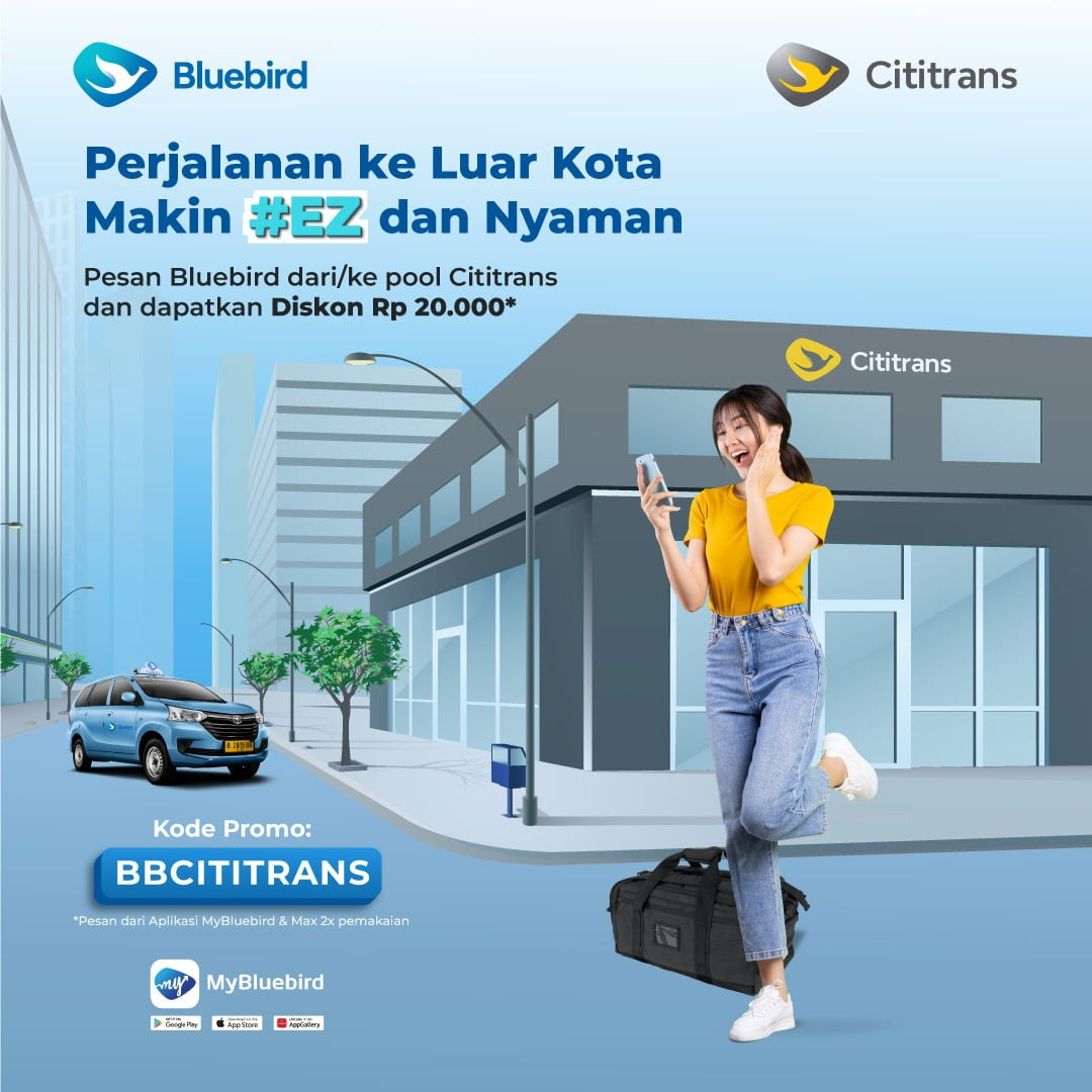 Get Rp 20,000 discount from/to Cititrans Pool with Bluebird Taxi. Book via MyBB and use promo code BBCITITRANS